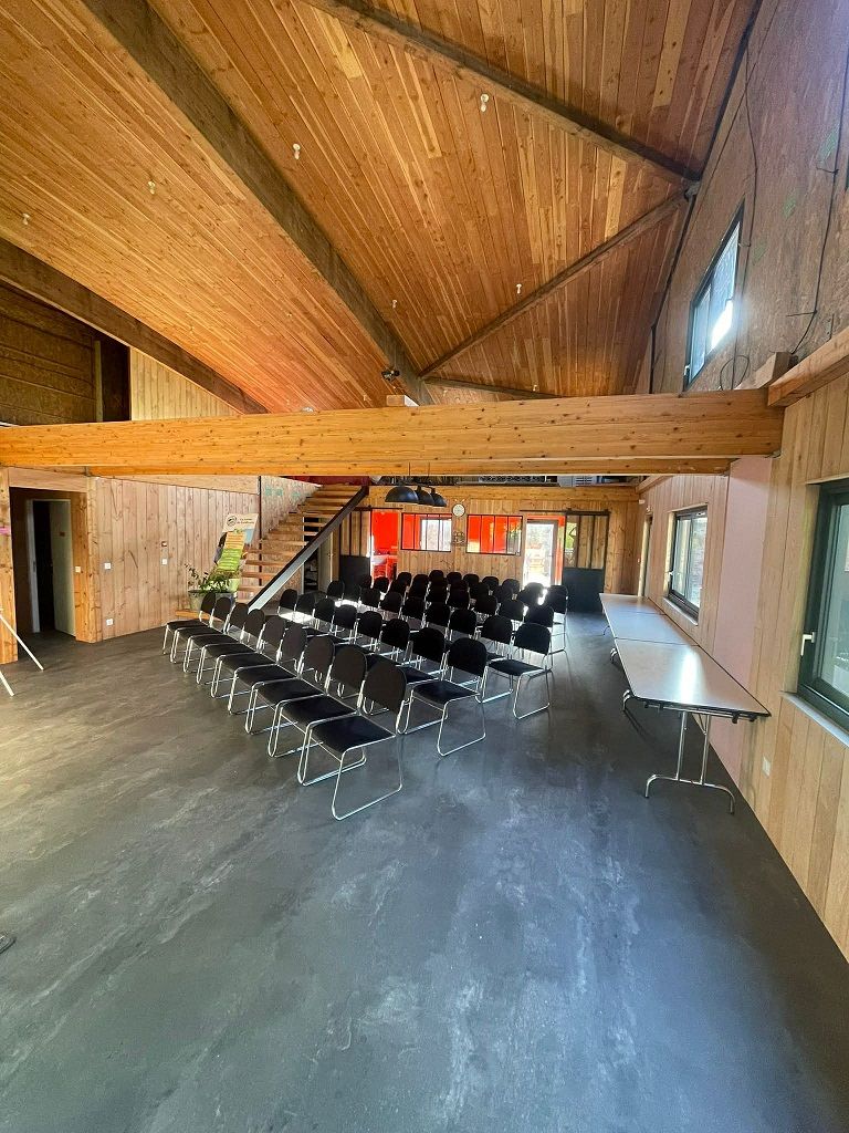 La location inclut la mise à disposition de tables et de chaises, un écran, le Wifi, le ménage, l’accès aux extérieurs, aux sanitaires et à la boutique.