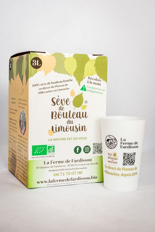 - nous essayons de réduire au maximum nos déchets ou les déchets futurs du client ou bien nous essayons de faire en sorte que tout soit recyclable ou réutilisable comme le verre gradué de la cure de sève de bouleau